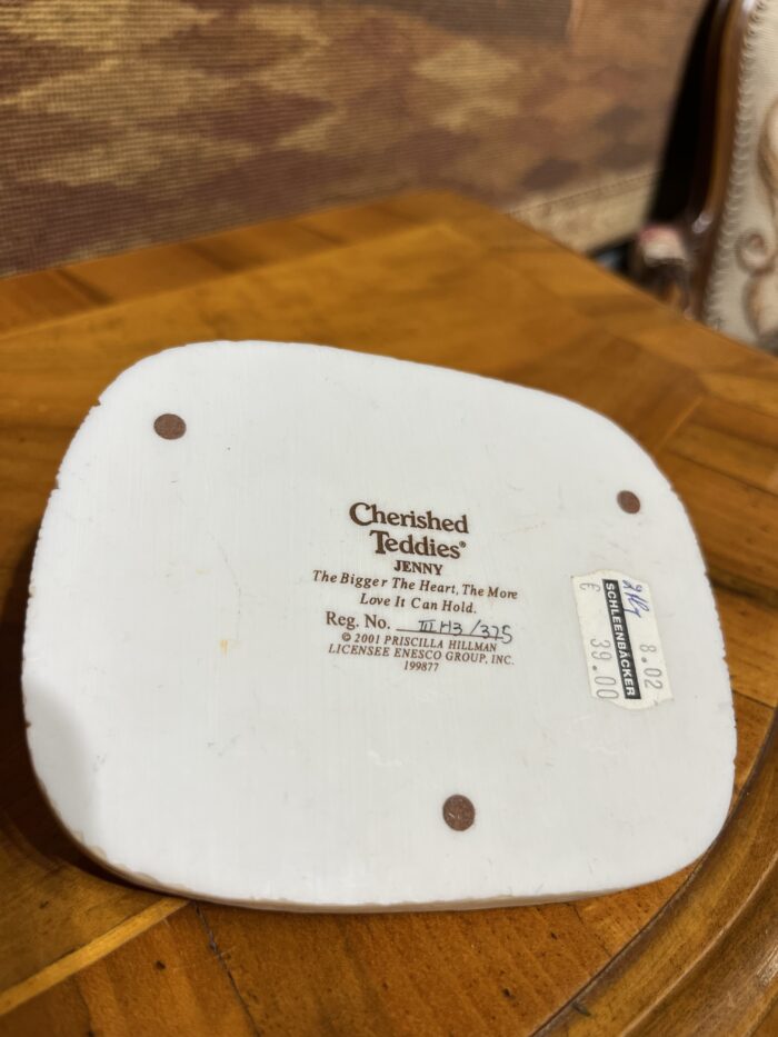 Cherished Teddies koleksiyonuna ait “Jenny” model sevimli ayıcık biblo, pastel tonları ve nostaljik tasarımıyla dekorasyon ve koleksiyon için ideal bir parçadır.