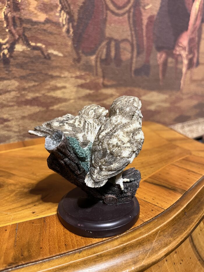 Ürün, sanatçı Andy Pearce tasarımı olup tamamen el boyaması (hand painted) olarak üretilmiştir. Gerçekçi tüy detayları, doğal renk geçişleri ve ahşap kütük üzerinde konumlandırılmış çift baykuş formu ile oldukça estetik bir görünüme sahiptir.