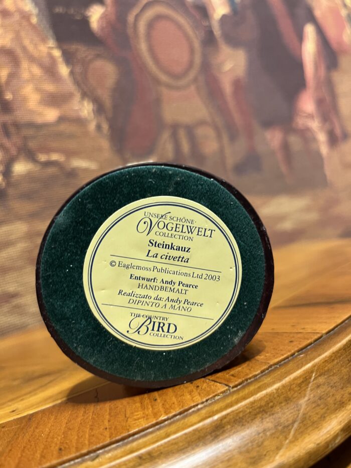 Doğadan ilham alınarak tasarlanmış bu özel baykuş figürü, Eaglemoss Publications tarafından üretilmiş olup koleksiyon severler için hazırlanmış özel bir parçadır. Alt kısmındaki etiketten de anlaşılacağı üzere “Steinkauz (Küçük Baykuş)” modelidir.