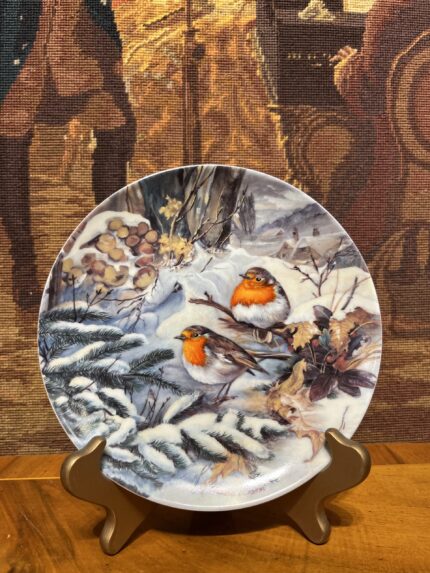 Hutschenreuther 1992 Koleksiyon Duvar Tabağı – Rotkehlchen im Schnee (Kızılgerdan Kuşu) Alman Porseleni