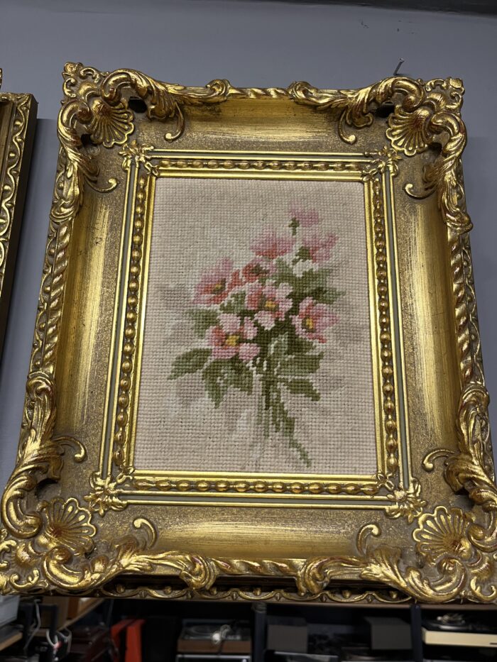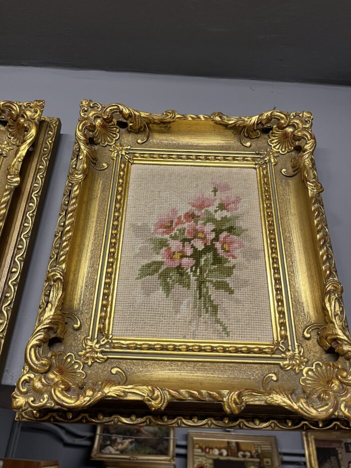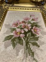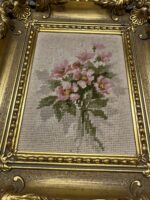 El İşçiliği Goblen Çiçek Tablosu – Altın Varak Oymalı Çerçeve (40x36 cm) ₺5.500,00