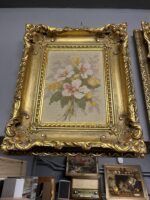 El İşçiliği Goblen Çiçek Tablosu – Altın Varak Oymalı Çerçeve (38×32 cm)