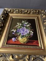 El İşçiliği Goblen Çiçek Tablosu – Altın Varak Oymalı Çerçeve (38×32 cm)
