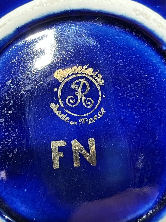 Klasik Fransız zarafetini yansıtan bu özel parça, Limoges porselen kalitesiyle üretilmiş dekoratif bir Lampe Berger parfüm lambasıdır. Derin kobalt mavi zemin üzerine işlenmiş beyaz floral desenler ve altın detaylar ürüne sofistike bir görünüm kazandırır. Üst kısmındaki metal mekanizma ve taş kapak sistemiyle birlikte orijinal formunu korumaktadır. Hem ortam kokulandırma amacıyla hem de dekoratif obje olarak kullanılabilecek çok yönlü bir üründür. Alt kısmında Limoges France damgası ve FN işareti bulunmaktadır, bu da ürünün Fransız üretimi olduğunu göstermektedir. Gövde formu yuvarlak ve dengeli olup masa, vitrin veya konsol üzerinde oldukça şık durur. Koleksiyonluk porselen ve nostaljik objeler sevenler için dikkat çekici bir parçadır. Yaklaşık 13 cm yükseklik ve 10 cm genişliğe sahiptir. Genel kondisyonu görsellerde görüldüğü gibidir.