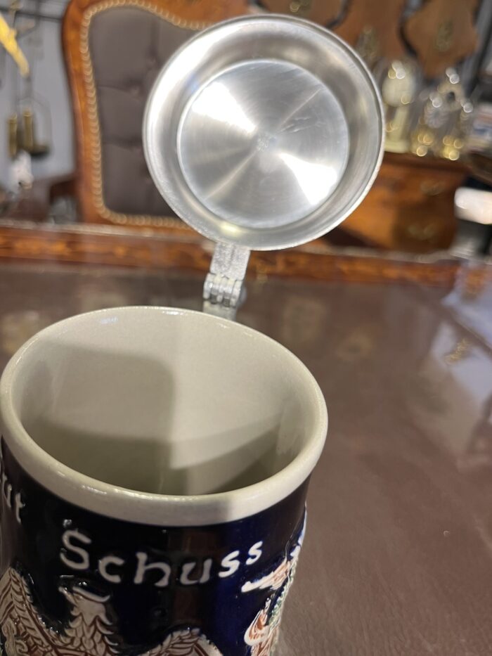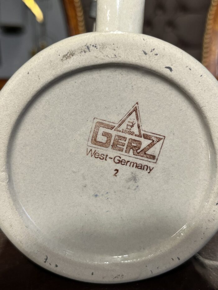 Bu özel tasarım vintage Gerz marka kapaklı seramik bardak, “West Germany” damgalı olup koleksiyon değeri taşıyan nadir parçalardan biridir. Üzerinde yer alan kabartmalı avcı figürü, klasik Alman kültürünü yansıtan detaylı bir işçilik sunar.
