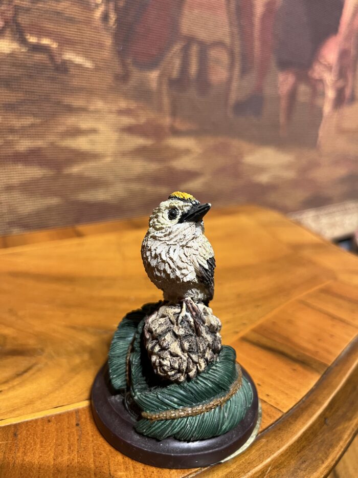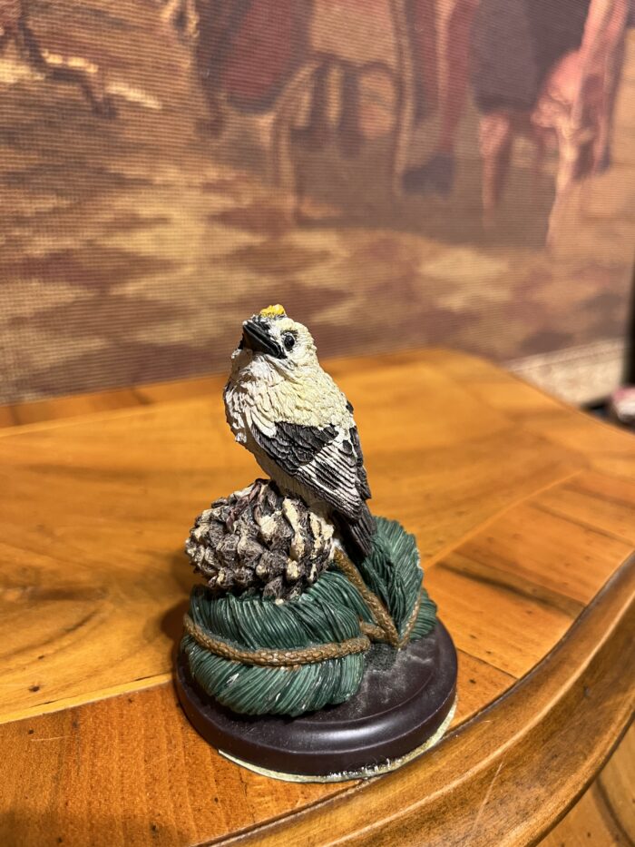 Ataantik05 koleksiyonuna ait bu özel Wacholderdrossel (ardıç kuşu) biblosu, doğadan ilham alan detaylı tasarımıyla öne çıkan bir parçadır. 2003 yılı üretimi olup Bird Collection serisine dahildir ve Andy Pearce tarafından tasarlanmıştır. El boyaması olması sayesinde kuşun tüy yapısı ve renk geçişleri oldukça gerçekçi bir görünüm sunar. Kozalak ve yeşil zemin detayı ile birlikte tasarlanmış olması ürüne doğal bir sahne hissi kazandırmaktadır. Alt kısmında bulunan orijinal etiket, ürünün koleksiyon değerini artıran önemli bir unsurdur. Reçine/seramik benzeri malzemeden üretilmiş olup sağlam ve uzun ömürlüdür. Vitrin, masa veya kitaplık dekorasyonu için ideal bir parçadır. Koleksiyon yapanlar ve vintage severler için dikkat çekici ve nadir bulunabilecek bir üründür. Yaşına bağlı olarak etikette hafif deformasyon bulunmaktadır ancak genel durumu temizdir.